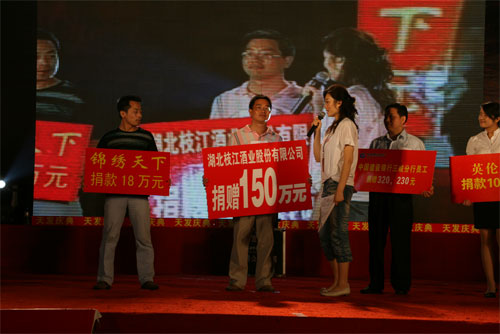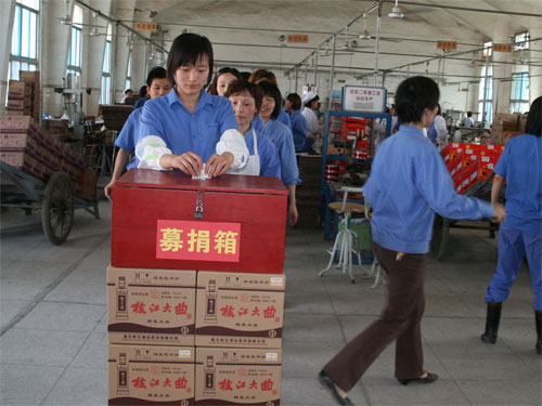 5月13日,枝江酒業(yè)公司工會(huì )向全體員工發(fā)出向四川震區災民獻愛(ài)心的倡儀,公司員工紛紛慷慨解囊,短短兩天就已收到捐款25萬(wàn)元,其中公司董事長(cháng)…