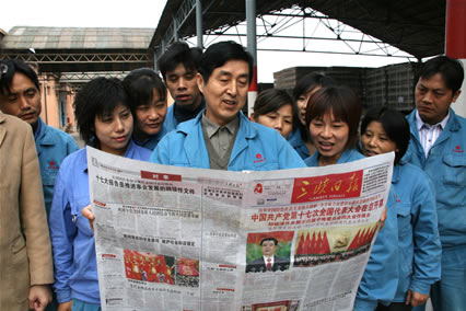 在黨的十七大召開(kāi)之際,枝江酒業(yè)充分利用報紙、黑板報、公司網(wǎng)站等宣傳陣地,向職工傳遞十七大盛況。董事長(cháng)蔣紅星號召全體員工在奮戰年末旺季…