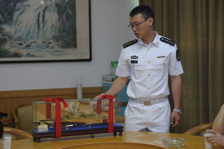 在隨后舉行的座談會(huì )上,任洪亮代表中國海軍“宜昌艦”全體官兵向枝江酒業(yè)贈送了最新的564“宜昌號”導彈護衛艦模型。他感謝枝江酒業(yè)對“宜昌艦”多年以來(lái)的關(guān)心和支持,希望雙方進(jìn)一步加深友誼,促進(jìn)軍企共建發(fā)展。蔣紅星說(shuō),作為宜昌市愛(ài)國擁軍的模范企業(yè),早在2001年,枝江酒業(yè)就與海軍“宜昌艦”簽訂了軍民共建協(xié)議,在共建活動(dòng)中,也曾親臨“宜昌艦”,體驗了官兵生活。對海軍官兵長(cháng)年堅守崗位、護國衛家,為人民安居樂(lè )業(yè)、企業(yè)安定發(fā)展保駕護航表示由衷的感謝和崇高的敬意。同時(shí),他表示,枝江酒業(yè)也將繼續做好對中國海軍“宜昌艦”的服務(wù)工作,建立和諧的軍企軍民關(guān)系。