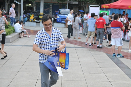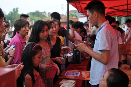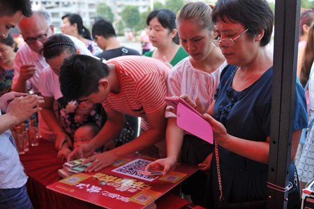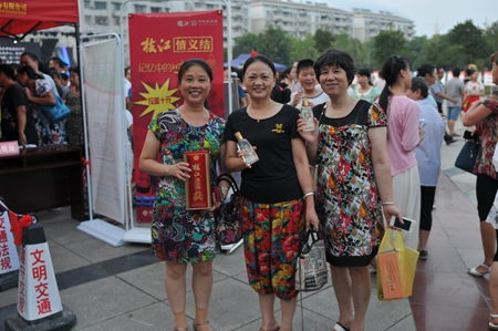 8月13日傍晚時(shí)分,枝江酒業(yè)為家鄉人民傾力打造的微信掃碼贈酒體驗活動(dòng)仍在繼續。經(jīng)過(guò)三天形式多樣的活動(dòng)體驗,通過(guò)參與市民的口口相傳,這天的活動(dòng)現場(chǎng)還迎來(lái)了幾位特殊的參與者,他們是周邊市場(chǎng)的分公司經(jīng)理及經(jīng)銷(xiāo)商老板。松滋分公司經(jīng)理陳偉說(shuō),看到枝江酒業(yè)官方微信上如此火爆的活動(dòng)現場(chǎng),公安代理商鄭老板表示一定要過(guò)來(lái)學(xué)習學(xué)習。為了回饋廣大市民不斷高漲的熱情以及對枝江酒業(yè)長(cháng)期以來(lái)的支持與關(guān)注,這天的掃碼獎品中還特意增加了口碑極好的“十五年經(jīng)典”作為活動(dòng)的大獎。另外,活動(dòng)展臺上還展出了枝江酒業(yè)美文集《枝江酒·時(shí)光韻》供市民隨時(shí)閱讀與分享,受到了廣大文學(xué)愛(ài)好者的青睞,短短幾分鐘,工作人員準備的一整箱50本書(shū)就被一搶而空。這也是繼《酒城之戀》受到廣場(chǎng)舞愛(ài)好者熱捧以來(lái),枝江酒業(yè)再一次在酒城文化上得到市民的充分肯定。這個(gè)夏天,枝江酒,演繹了枝江人不一樣的傍晚醉!