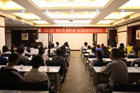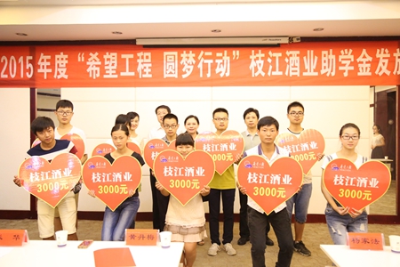 8月25日,由枝江酒業(yè)股份有限公司、共青團枝江市委共同主辦的2015年度“希望工程?圓夢(mèng)行動(dòng)”枝江酒業(yè)助學(xué)金發(fā)放儀式在枝江國酒舉行。市委常委、宣傳部部長(cháng)黃丹梅,枝江酒業(yè)股份有限公司黨委書(shū)記張華等出席儀式。在活動(dòng)現場(chǎng),枝江酒業(yè)為枝江市100名家境貧寒、成績(jì)優(yōu)異的準大學(xué)生發(fā)放30萬(wàn)元助學(xué)金。來(lái)自顧家店鎮受助學(xué)生代表王慧玲說(shuō):“感謝各位領(lǐng)導和枝江酒業(yè)對我的幫助,在以后的學(xué)習和生活中,我會(huì )更加努力奮進(jìn),待我學(xué)有所成,定會(huì )回饋社會(huì ),幫助那些同樣需要幫助的人,讓這份愛(ài)心繼續傳遞下去?!?/span>