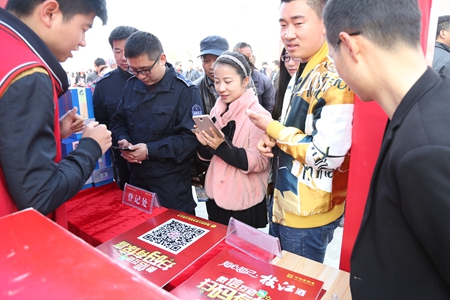 開(kāi)幕式現場(chǎng)在枝江酒業(yè)展臺參加掃二維碼贈送枝江酒活動(dòng)的觀(guān)眾